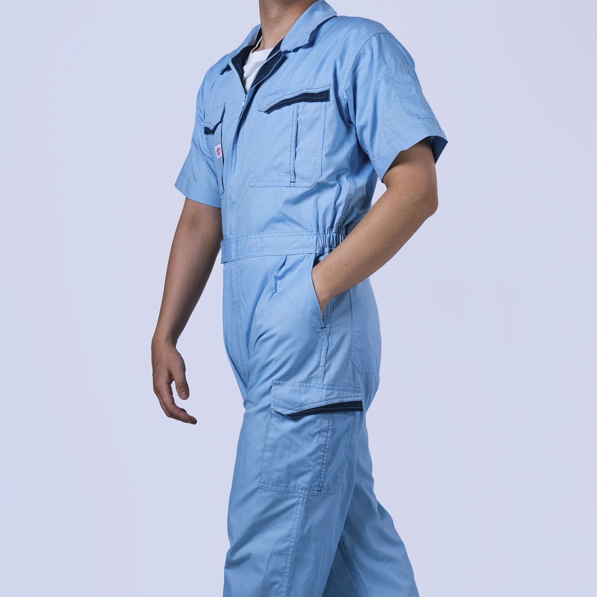 「抗菌」「消臭」「防臭」機能を備えた高機能素材『デオクロス®』を使用した春夏用の半袖つなぎ服。